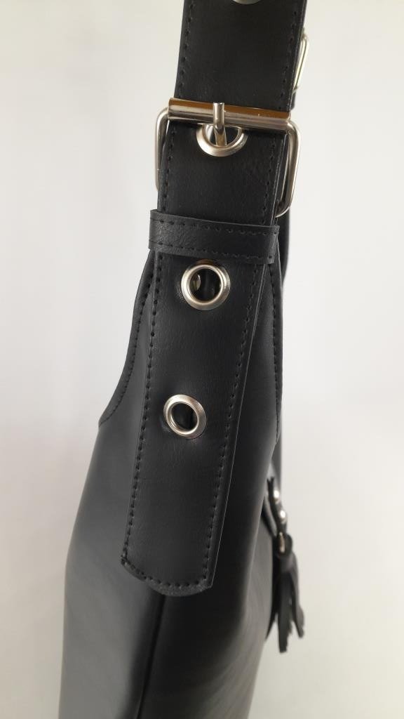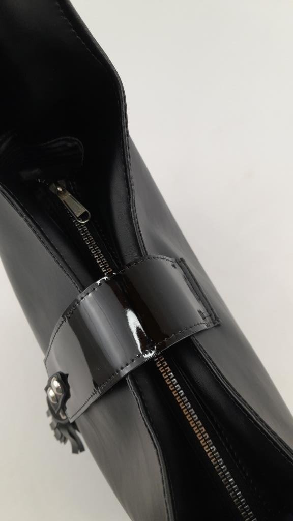 • LA APERTURA DE LA CARTERA ES A TRAVÉS DE CIERRE CON CURSOR METÁLICO. CORREA QUE PUEDE ALARGAR Y ACHICAR A TRAVES DE DOS HEBILLAS DE METAL PESADAS EN SUS COSTADOS. BASE RIGIDA CON PATINES DE METAL. LENGÚETA QUE CAE HACIA EL FRENTE CON AVIOS DE METAL Y BORLA BIEN AMPLIA.