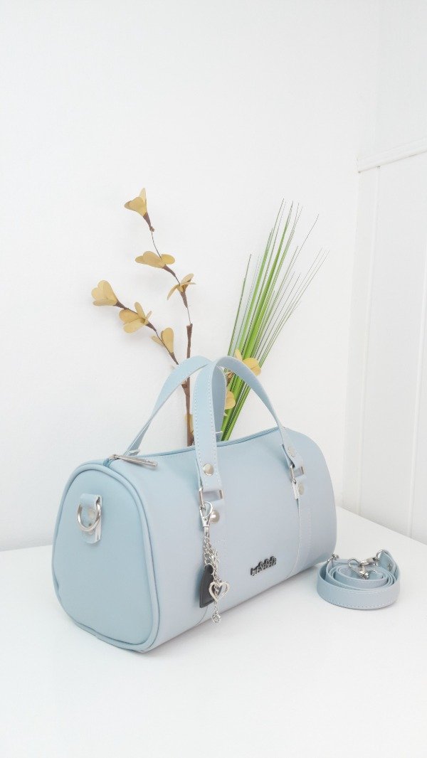• MANIJAS CORTAS Y CORREA LARGA REGULABLE CON MOSQUETONES DE METAL.