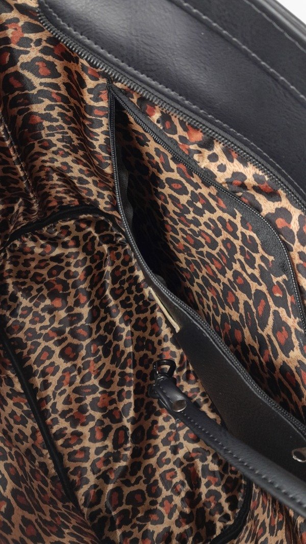 • REALIZADA EN ECO CUERO DE CALIDAD PREMIUM, FORRADA POR DENTRO CON TELA ESTAMPADA, POSEE BOLSILLO AMPLIO DE ECO CUERO PREMIUM CON CIERRE EN SU INTERIOR.